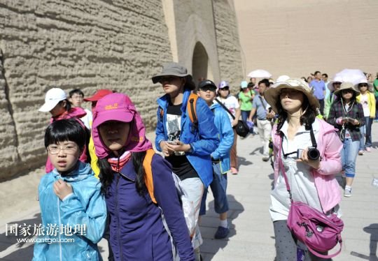 國(guó)家旅游地理 甘肅酒泉8月10日訊 8月10日,游客在嘉峪關(guān)城門(mén)前參觀(guān)。近一個(gè)月來(lái),我國(guó)許多地區(qū)持續(xù)高溫天氣,西北地區(qū)成為眾多游客逃離酷暑、納涼觀(guān)光的好去處。據(jù)了解,目前甘肅省內(nèi)各大旅行社絲綢之路旅游線(xiàn)路預(yù)訂火爆。敦煌莫高窟、嘉峪關(guān)等多個(gè)景區(qū)游客爆滿(mǎn),賓館甚至出現(xiàn)一房難求的現(xiàn)象,旅游部門(mén)提醒有出游需求的游客盡量提早預(yù)訂,保證順利出游。 /新華社記者 陳斌 攝