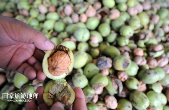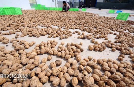 國家旅游地理 青海海東9月18日訊 青海省循化撒拉族自治縣積石鎮(zhèn)的農(nóng)民在晾曬薄皮核桃(9月17日攝)。金秋時(shí)節(jié),在青海省循化撒拉族自治縣核桃種植區(qū),果肉豐滿的薄皮核桃開始上市。近年來,循化縣利用黃河上游的氣候和土壤特點(diǎn),發(fā)展薄皮核桃特色產(chǎn)業(yè)。目前,循化縣核桃種植面積超過3萬畝,小小核桃成為當(dāng)?shù)剞r(nóng)民致富的重要渠道。 /新華社記者 侯德強(qiáng) 攝