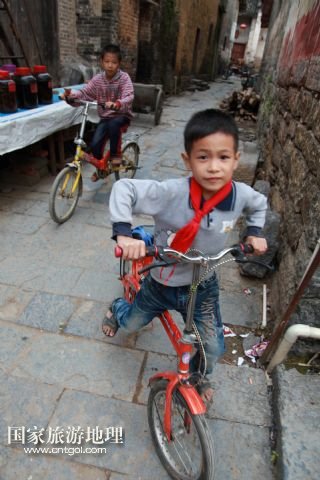 9月26日,孩子們?cè)趶V西昭平縣黃姚古鎮(zhèn)騎自行車(chē)。