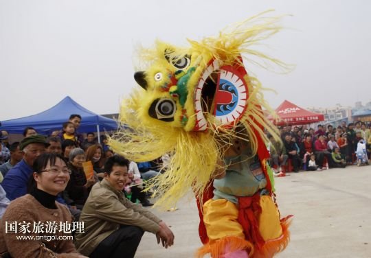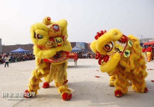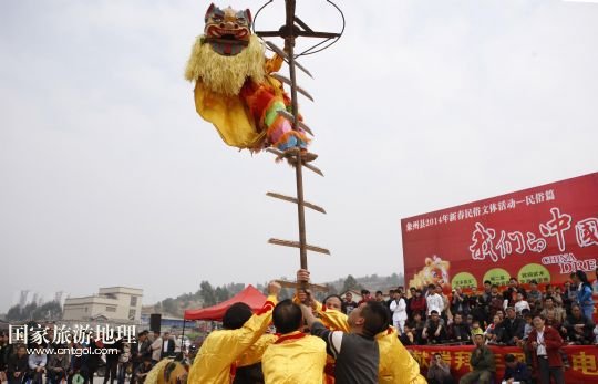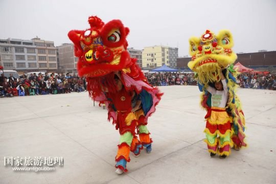 國(guó)家旅游地理 廣西來賓2月5日訊 2月4日,廣西象州縣的農(nóng)民舞獅隊(duì)在參加獅王爭(zhēng)霸賽。春節(jié)期間,廣西壯族自治區(qū)來賓市象州縣舉行獅王爭(zhēng)霸賽,來自該縣的32支農(nóng)民舞獅隊(duì)一展技藝、爭(zhēng)奪獅王,為當(dāng)?shù)厝罕姭I(xiàn)上一場(chǎng)精彩的民俗文化大餐。 /新華社發(fā)(龔堅(jiān) 攝)