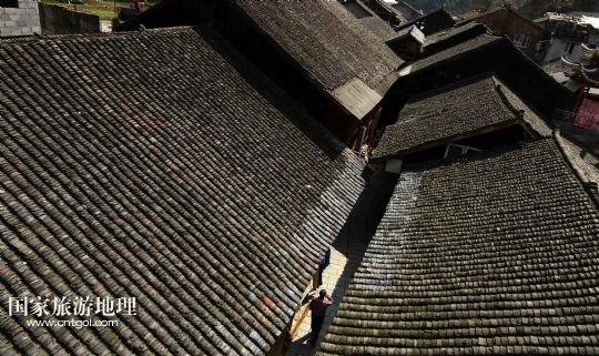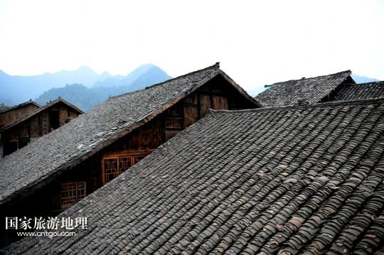 用布瓦覆蓋的慶陽古街吊腳樓錯落有致(3月27日攝)。