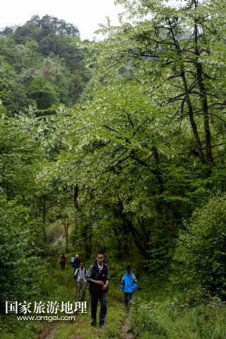 國(guó)家旅游地理 四川雅安5月4日訊 5月3日,游客從龍蒼溝國(guó)家森林公園珙桐林的鴿子花旁經(jīng)過(guò)。目前,在位于四川省大相嶺山脈東麓北坡的龍蒼溝國(guó)家森林公園里,近8萬(wàn)畝的鴿子花盛開(kāi)。鴿子花是珙桐之花。珙桐是我國(guó)特有的珍稀植物,瀕臨滅絕,是國(guó)家一級(jí)保護(hù)植物,也是著名的觀賞植物。珙桐花朵盛開(kāi)時(shí)猶如鴿群展翅欲飛,而被稱為鴿子花。 /新華社記者 江宏景 攝