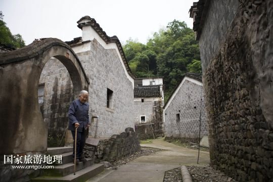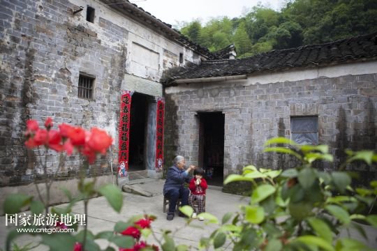 國家旅游地理 江西九江5月12日訊 5月12日,孩子們坐在土目源村的老房子前玩耍??沼牡纳焦龋幌⒌南?,斑駁的石墻,古樸的石屋。在江西省北部山區(qū),有一座石屋山居的古村落——都昌縣大港鎮(zhèn)土目源村。