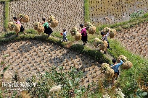 貴州省黔東南黎平瑤鄉(xiāng)糯谷秋收景(圖)