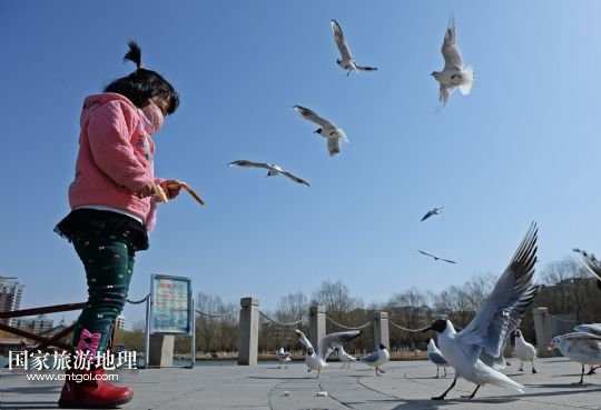 國家旅游地理 寧夏銀川3月10日訊 3月9日,在銀川市燕鴿湖,一位小朋友在喂食紅嘴鷗。近日,隨著寧夏銀川市各湖泊、濕地冰面融化,銀川市興慶區(qū)燕鴿湖迎來數(shù)百只紅嘴鷗在湖面飛翔覓食。近年來,銀川市持續(xù)加大對濕地的保護與恢復(fù),每年春季都有大批候鳥光顧,成為銀川市一道美麗風(fēng)景。 /新華社記者 王鵬 攝