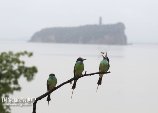 國家旅游地理 江西九江6月14日訊 6月14日,藍(lán)喉蜂虎在鄱陽湖畔的樹枝上休憩。進(jìn)入夏季以來,位于我國第一大淡水湖江西鄱陽湖畔的九江市廬山區(qū)姑塘鎮(zhèn)迎來了眾多美麗的小鳥藍(lán)喉蜂虎。