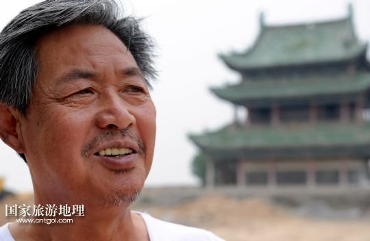 6月18日,陜西省文物保護(hù)員李潤倉在向游人介紹宋祠修繕情況。今年已63歲的他30年如一年,義務(wù)看管保護(hù)唐塔和宋祠,被傳為佳話。