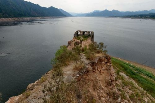 2015年7月16日,河北潘家口水庫旁的喜峰口長城墻體塌方嚴(yán)重。新華社記者牟宇 攝